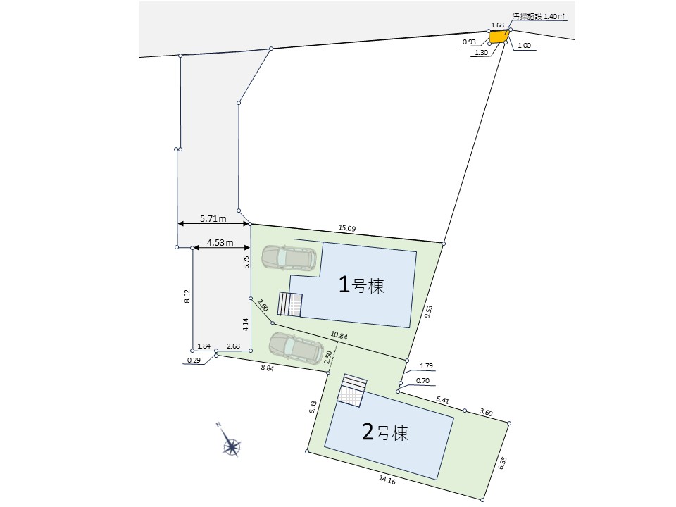 | 土地面積 | 1号棟:113.06㎡(34.20坪) 2号棟:126.82㎡(38.36坪) |