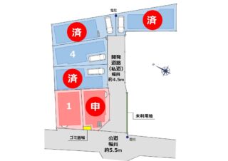 区画図・間取り図 【完成しました!】住環境充実です!1階水廻り集約しており対面キッチンや各居室に収納完備しております。元渕江公園へは徒歩4分! 開発により整備された道路のある新築戸建て分譲地誕生。私道はお子様が安心して歩…